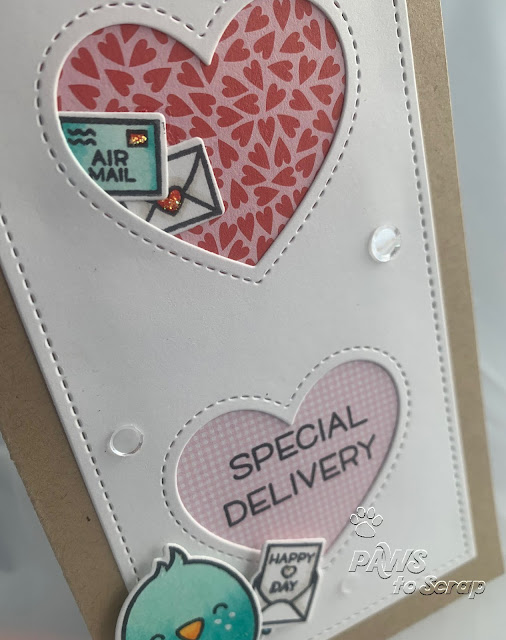 Stamps and Dies: Special Delivery Stamp Set and Dies, Special Delivery Add-on Stamp Set; Scallop Slimline with Hearts Landscape Die (Lawn Fawn);